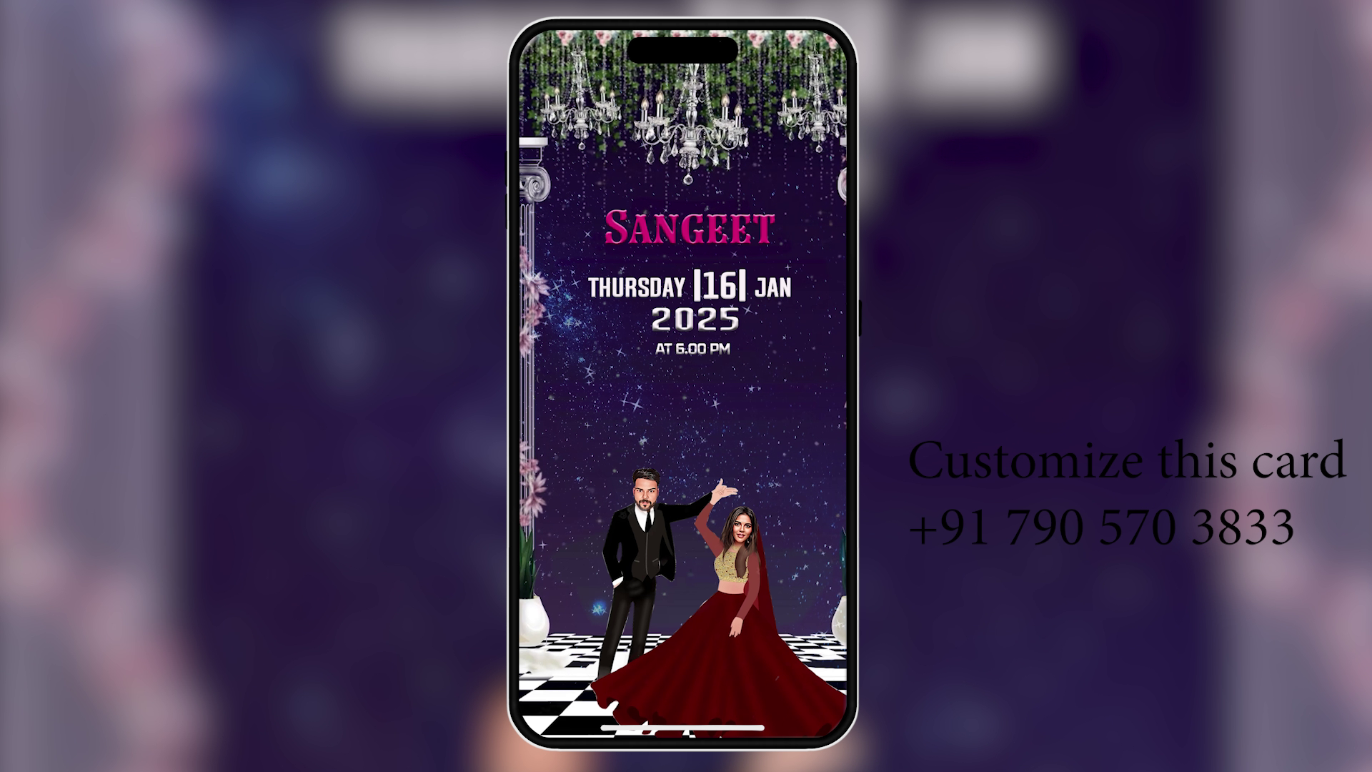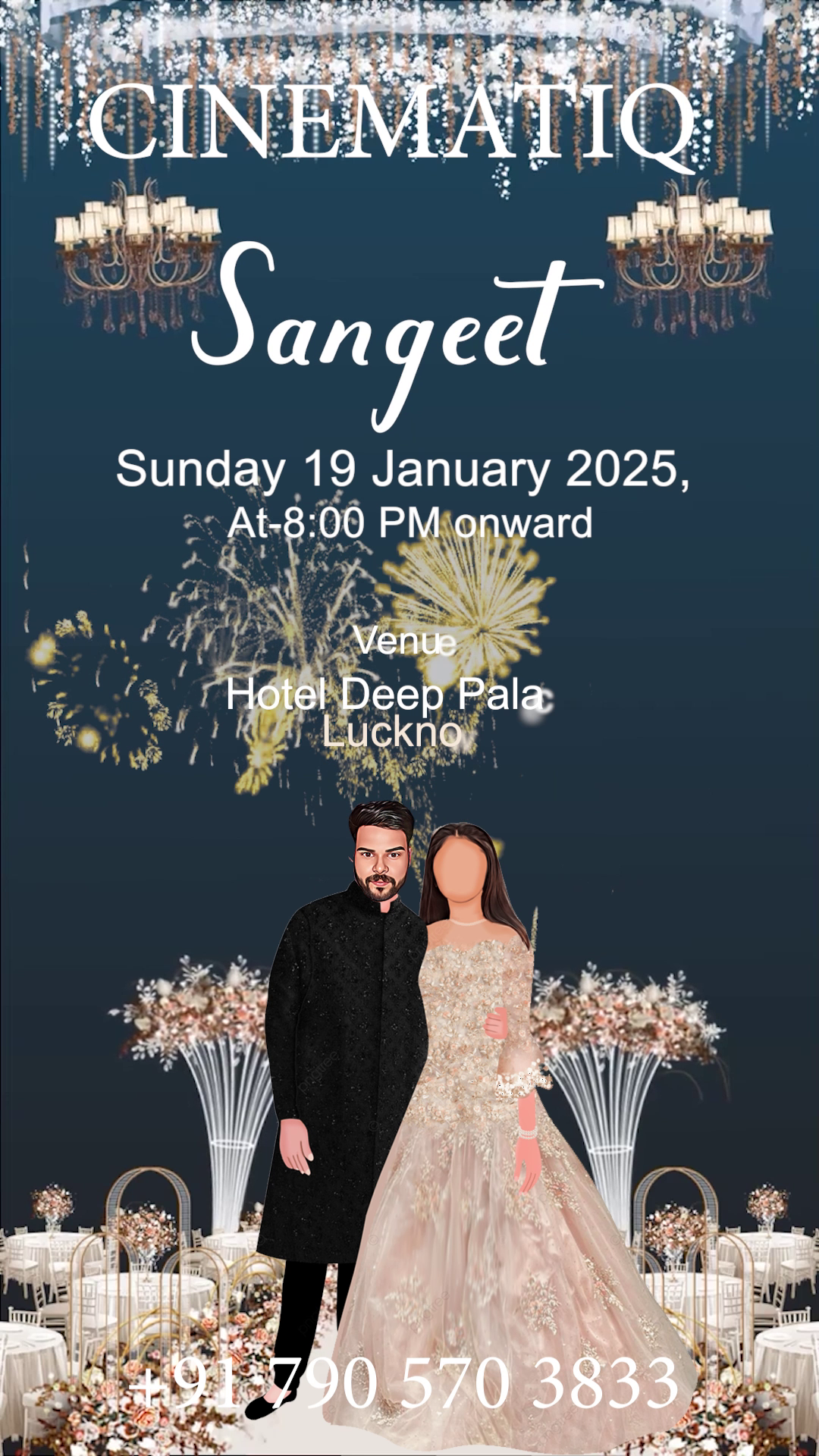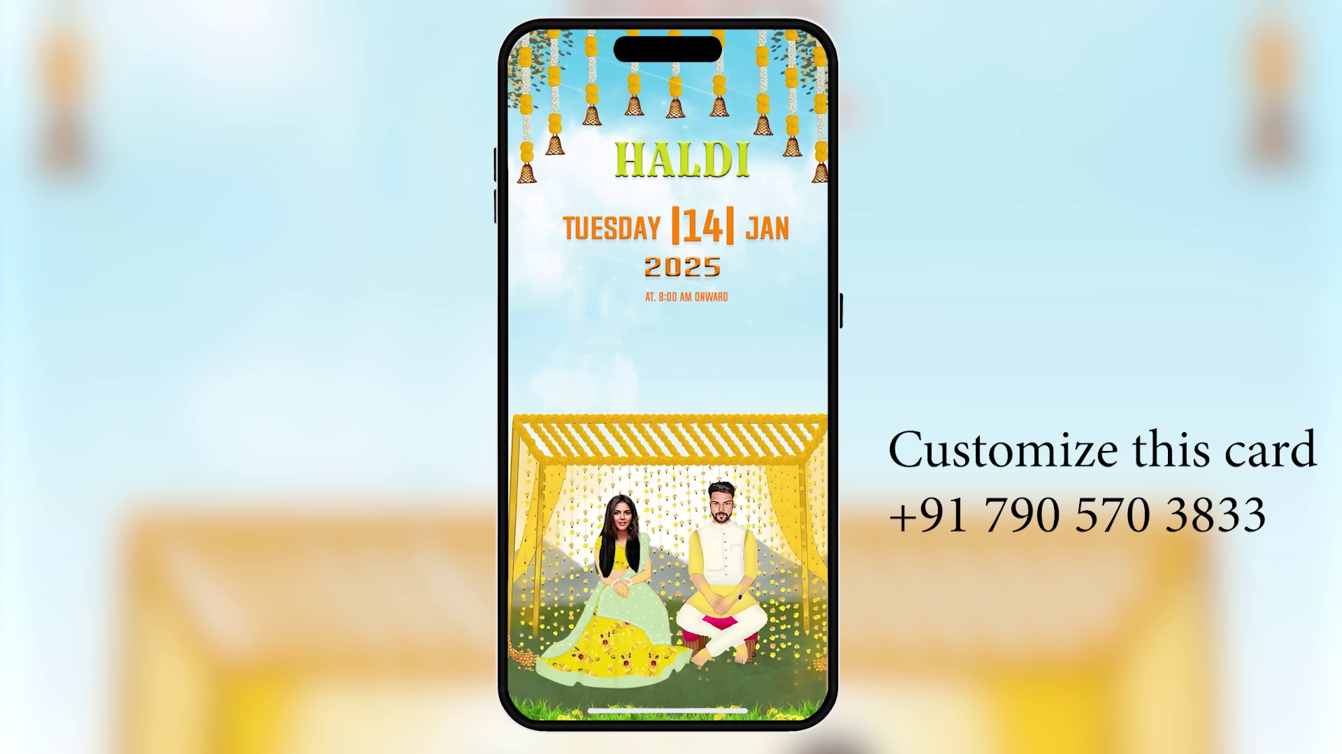 🎨 Fully Customizable: Easily change text (Bride/Groom names, Dates, Venue), replace character images, and adjust colors.