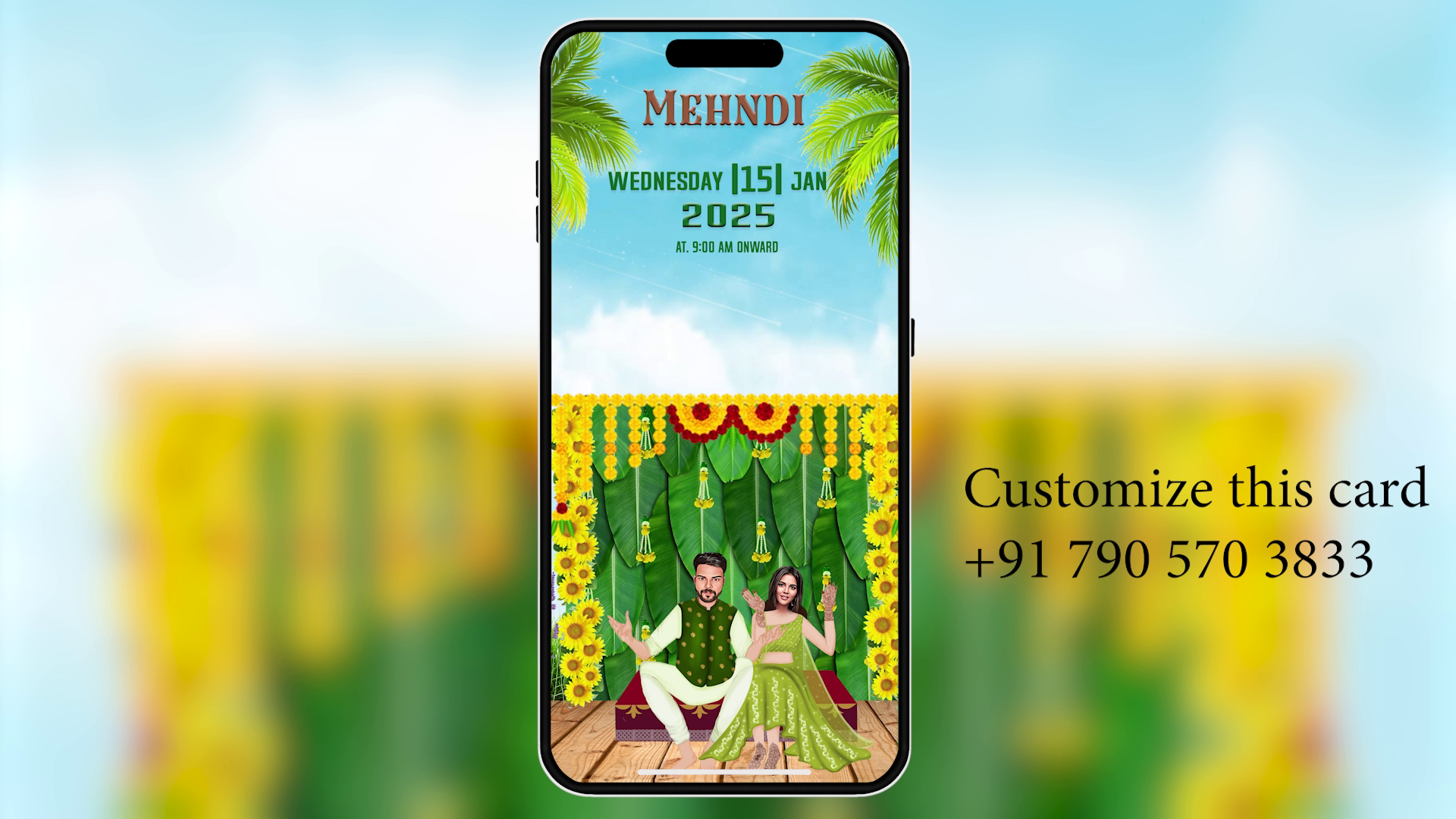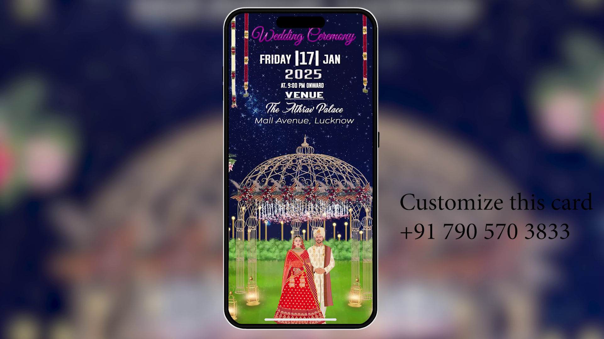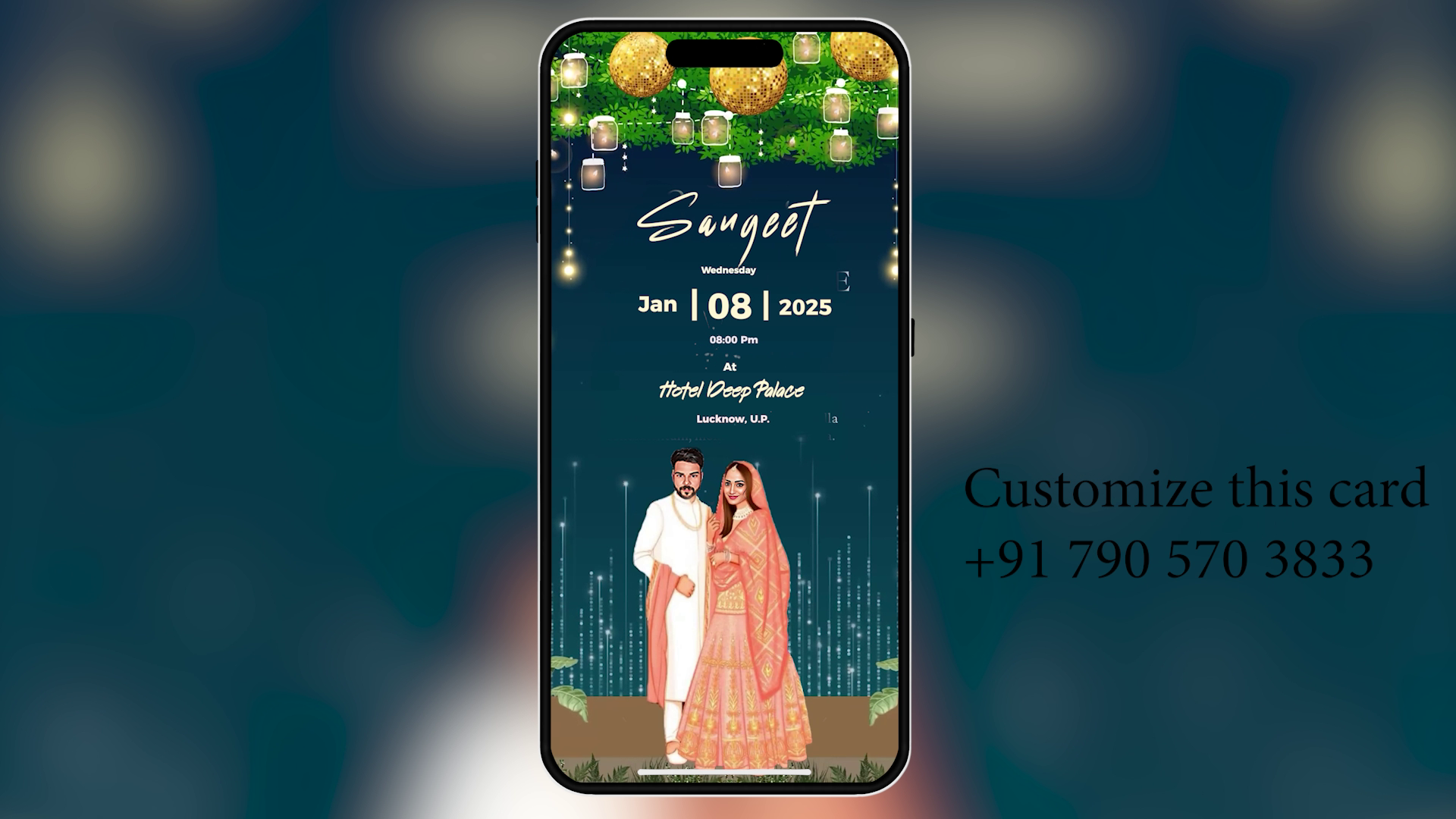 🎨 Fully Customizable: Easily change text (Bride/Groom names, Dates, Venue), replace character images, and adjust colors.